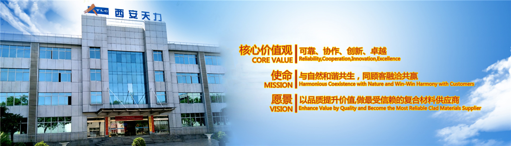 西安天力金屬?gòu)?fù)合材料股份有限公司是西北有色金屬研究院(集團(tuán))產(chǎn)業(yè)化上市公司“西部材料”控股的獨(dú)立法人公司,是專業(yè)從事層狀金屬?gòu)?fù)合材料研究及生產(chǎn)的高新技術(shù)企業(yè),成立于2003年12月25日,位于西安經(jīng)濟(jì)技術(shù)開發(fā)區(qū)涇渭工業(yè)園,注冊(cè)資本10895萬(wàn)股,擁有生產(chǎn)廠房23000余平米,各類生產(chǎn)設(shè)備200余臺(tái)套及兩塊條件優(yōu)越的爆炸復(fù)合場(chǎng)地,形成年產(chǎn)35000噸層狀復(fù)合材料的生產(chǎn)加工能力……
